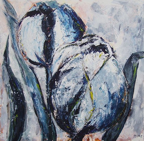 In de schilderijen zoekt zij naar een ritmische compositie en komt dan tot bijna geabstraheerde vormen. Daarbij gaat het vooral om kleur. Met haar kleurenpalet brengt zij harmonie in haar werk. Inspiratiebronnen zijn afkomstig uit haar directe omgeving. De interactie tussen het werk en de kijker krijgt daardoor een extra dimensie: haar creativiteit wordt als het ware door de kijker overgenomen en voltooid.